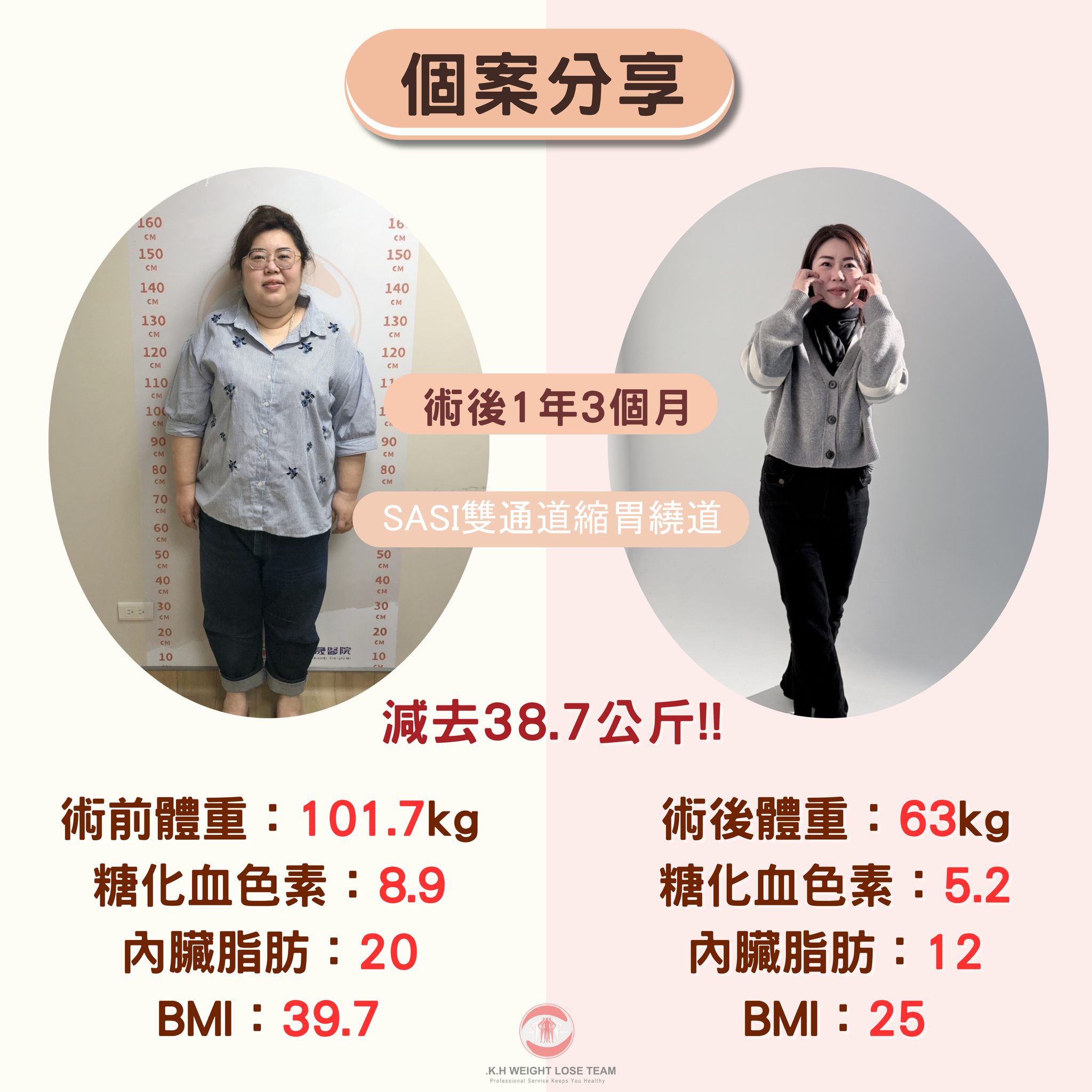 手術前後,徐醫師團隊的細心、耐心與陪伴,讓我能安心把自己交給他們。這一年因工作關係無法規律運動,但體重仍從105公斤減去40公斤,身體的不適感、心理的壓力,還有那些傷人的話語,都一一遠離。